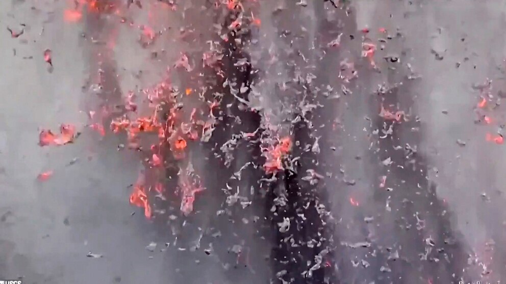 Footage from the eruption shows the camera malfunctioning after it was engulfed by lava.