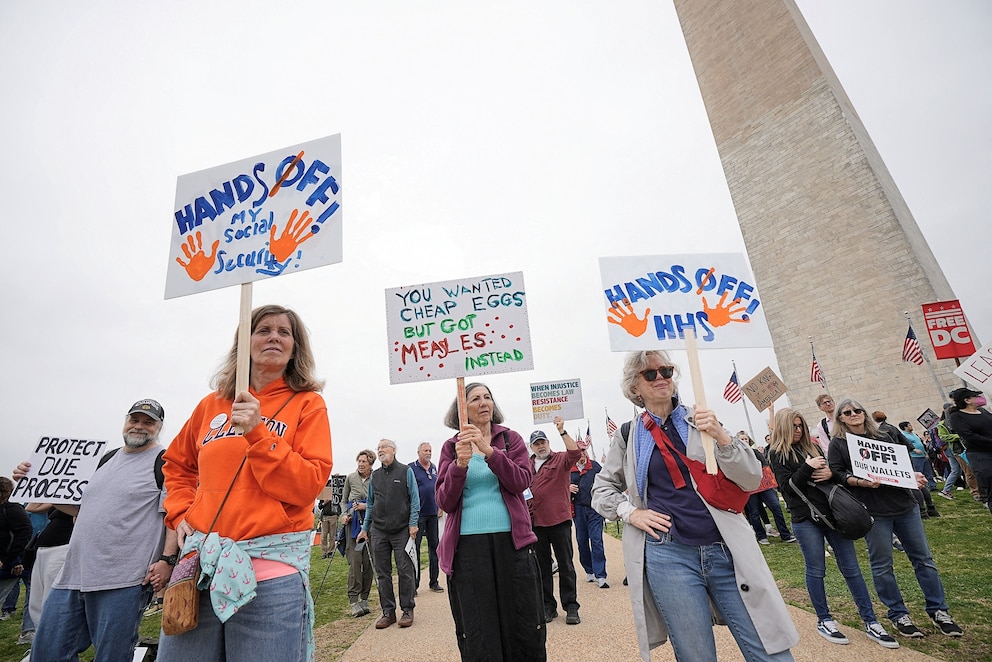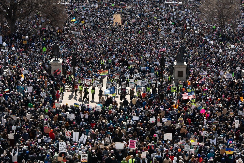 Tens of thousands of protesters mustered in cities and towns across the country on Saturday to sound off against the Trump administration's cuts to the federal government and its policies.