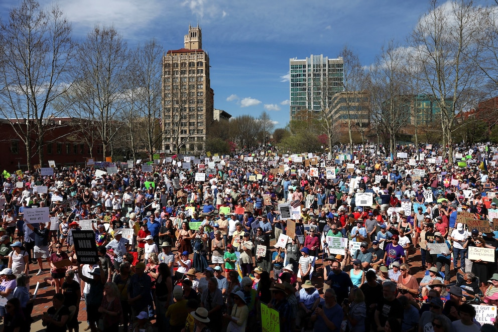 Huge crowds gather in 'Hands Off' rallies nationwide in protest of Trump administration