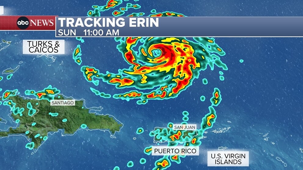 Erin will continue to impact Puerto Rico, Hispaniola and the Turks and Caicos Islands as it gradually turns to the west-northwest tonight before taking on a more northwest or north-northwesterly trajectory on Sunday into Monday.