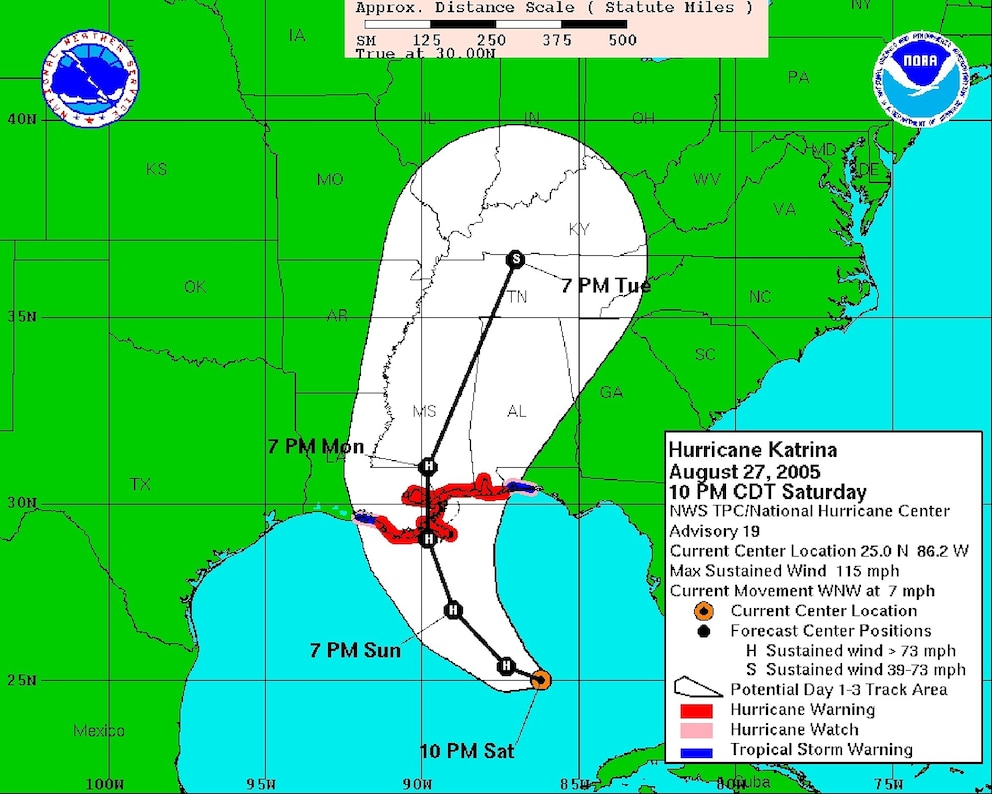 Leading up to Katrina's fateful landfalls over the Gulf Coast, the National Hurricane Center and the local National Weather Service office for New Orleans issued chilling forecasts for the Louisiana and Mississippi Coasts.