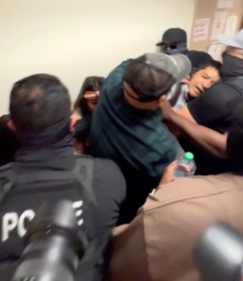 "Just grab her, pull her away," an agent can be heard saying as another agent grabs the woman by the hair.