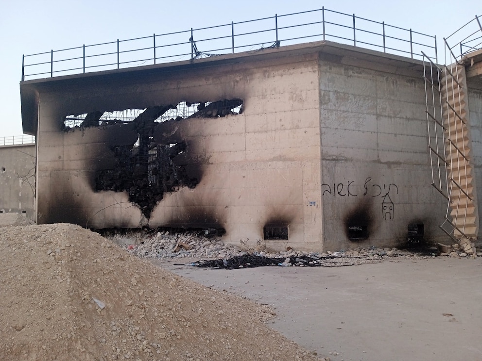 Photos taken by the CMWU's staff after the fire and provided to ABC News reveal the damage to the plant. The photos show multiple treatment towers with charred walls, their interiors burnt out and strewn with garbage. The treatment towers are scattered with Hebrew-language graffiti, including one reading, "I'll be back soon."