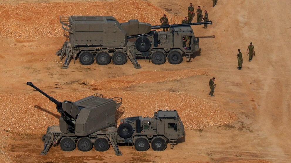Israeli soldiers next to artillery vehicles near the Israel-Lebanon border, in northern Israel, April 15, 2026.
