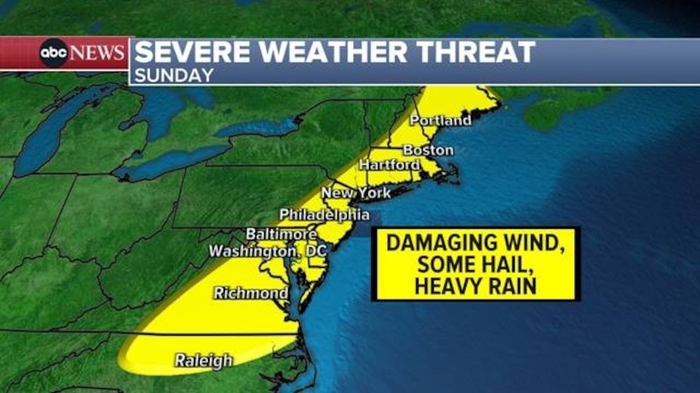 Meanwhile, hot weather up and down the East Coast is expected to give way to severe weather Sunday.