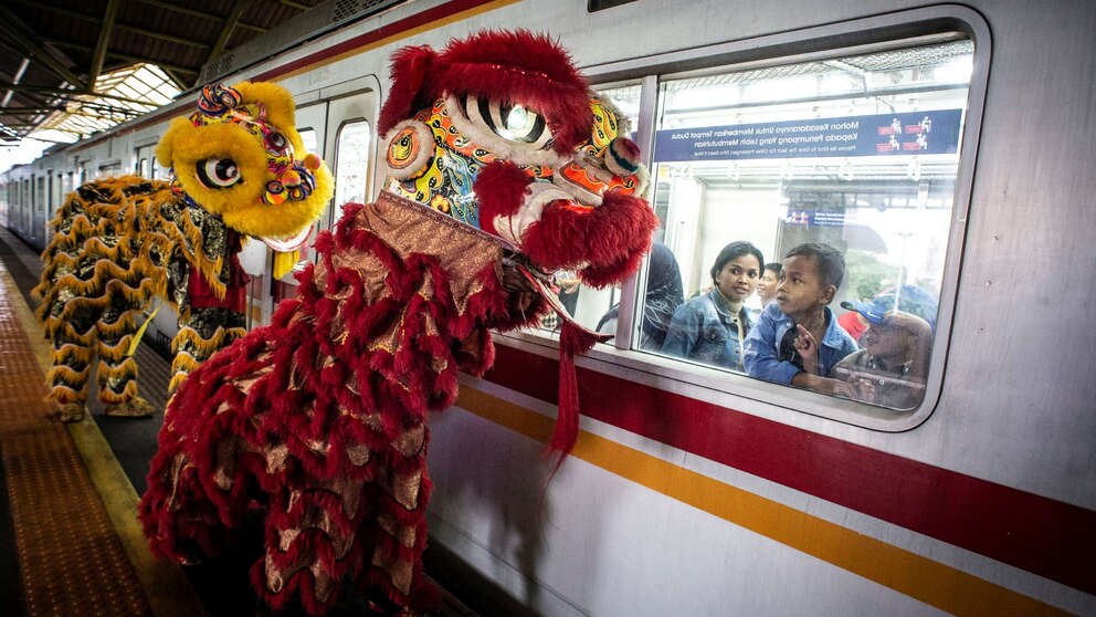 The Lunar New Year celebrates the beginning of a new year on the traditional Chinese calendar.Passengers look from the window of a train as Lion-dances perfrom at a platform of Gambir station during Chinese Lunar New Year of the Rat celebrations in Jakarta, Indonesia, Jan. 25, 2020.