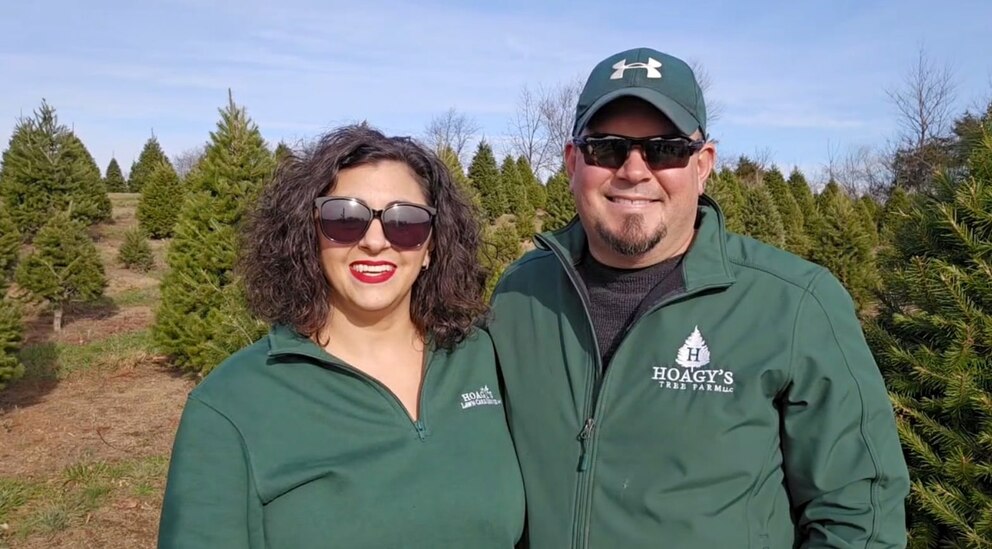 Across the country in Grantville, Pennsylvania, Dave and Andrea Hogentogler, who are co-owners of Hoagy's Tree Farm, urged "World News Tonight" viewers to buy trees from local farmers.