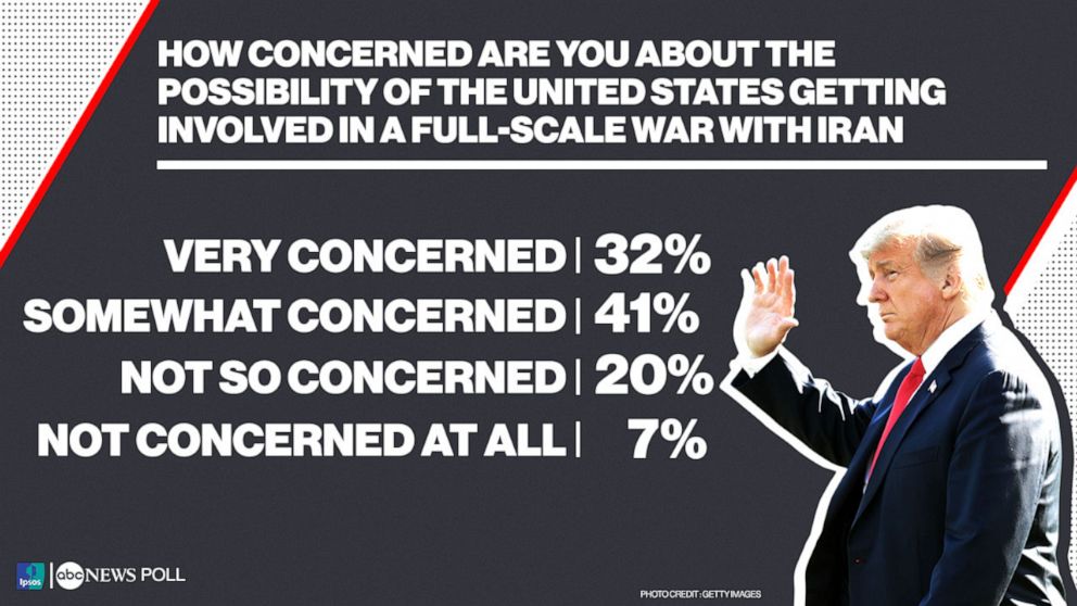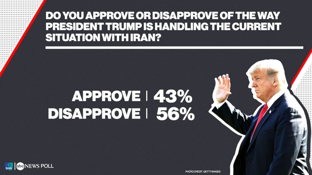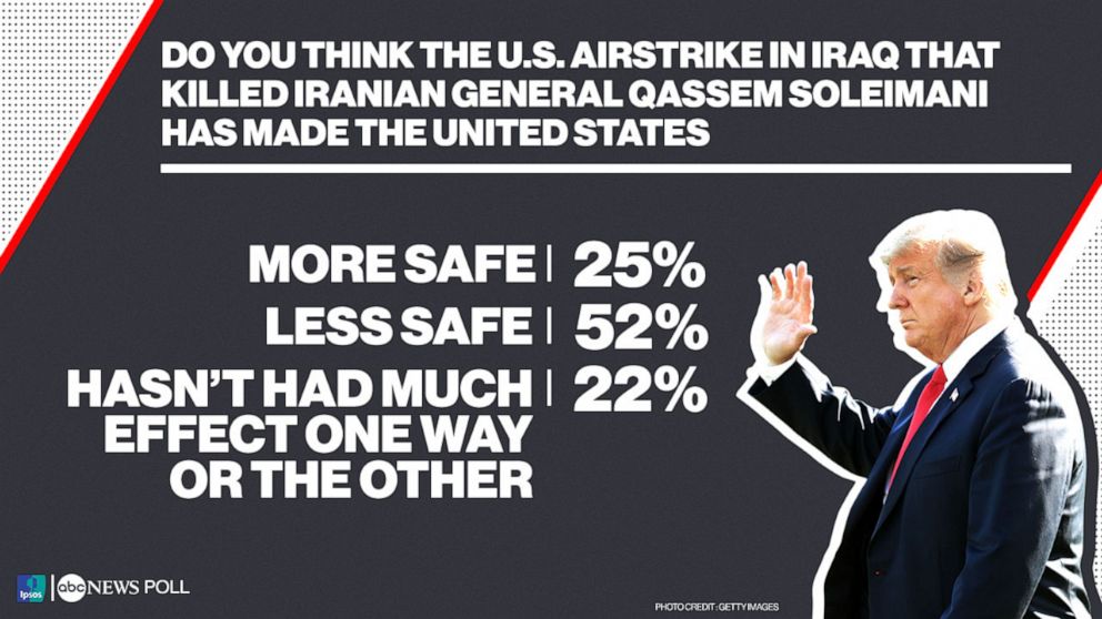 In a week dominated by increased tension with Iran and speculation over when impeachment articles would be delivered to the U.S. Senate, a majority of Americans said they disapprove of President Trump's handling of the situation with Iran and feel less safe, according to a new ABC News/Ipsos poll.