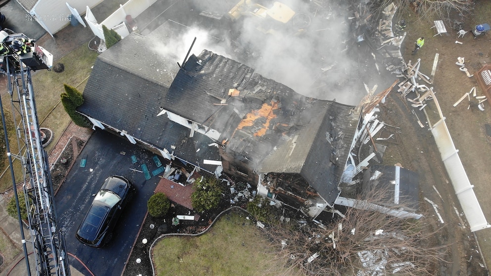 "Nearby home surveillance captured a black sedan as it passed the home on Merganser Way and stopped at the Mallard Drive intersection at 5:01 a.m.," police said. "A subject exits the vehicle with an object and walks towards the residence. After approximately 15 minutes, the subject appears to run back to his waiting vehicle and departs the area on Mallard Drive towards Portside Drive. As the suspect vehicle fled the area, smoke could be seen billowing up from the rear yard of the home, and within 30 seconds, a large explosion was observed, and the house became engulfed in flames."