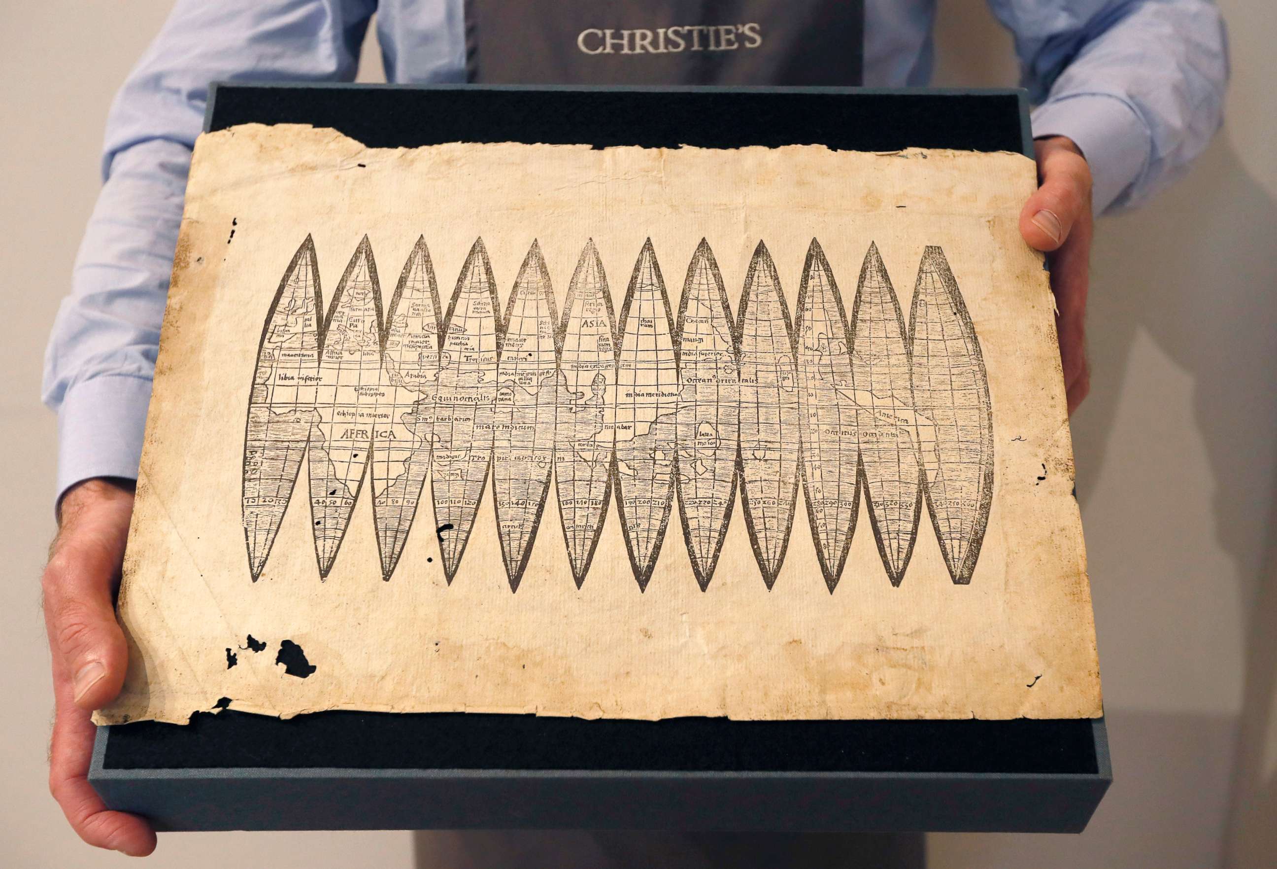 The two-dimensional gore map was produced by German cartographer Martin Waldseemuller in 1507 and is one of just five known copies, according to Christie's.