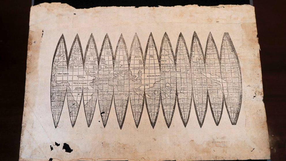 The map not only uses "America" as the name for the New World for the first time, but it's also the first map to show separate South and North American continents and is the earliest recorded printed terrestrial globe, depicting an accurate illustration of the world in 360 degrees in the form of a set of gores, according to a press release from Christie's on Wednesday announcing the discovery.