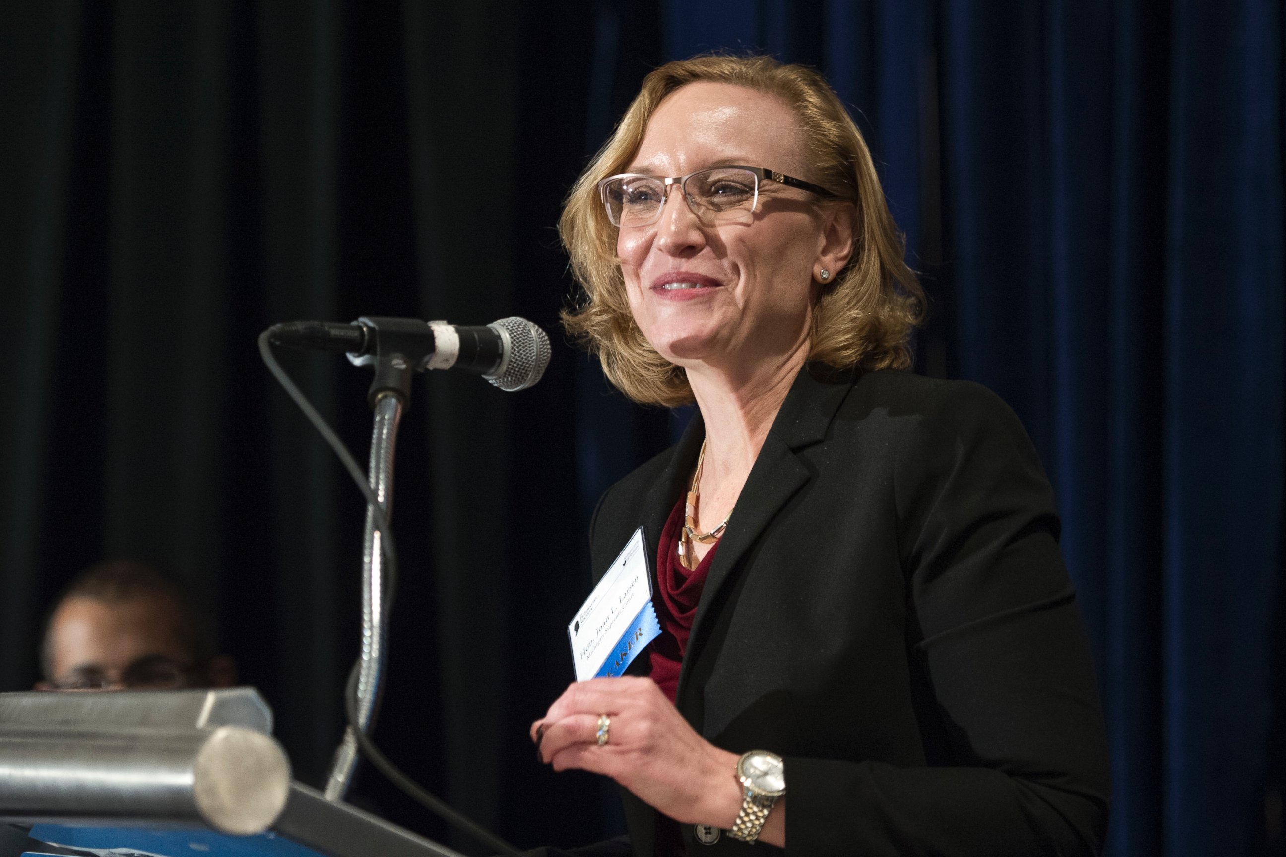 Justice Joan Larsen, 48, was named to the Michigan Supreme Court in September 2015, and in November 2016 won a statewide election to retain the seat through the end of 2018. Before that, Larsen was on the University of Michigan Law School faculty for more than a decade.