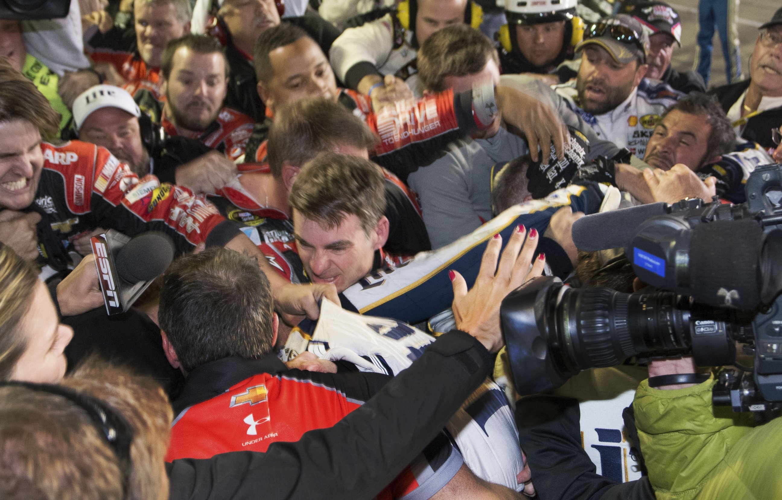 Gordon screamed at Keselowski, then could be seen grabbing his collar. A scrum ensued with fists flying. The racers disappeared in the melee.
