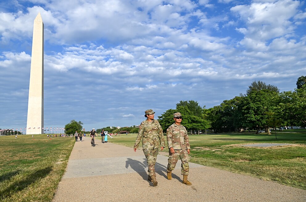 On Tuesday, National Guard troops were spotted on the National Mall, with many stationed around the base of the Washington Monument. The troops left Wednesday morning.