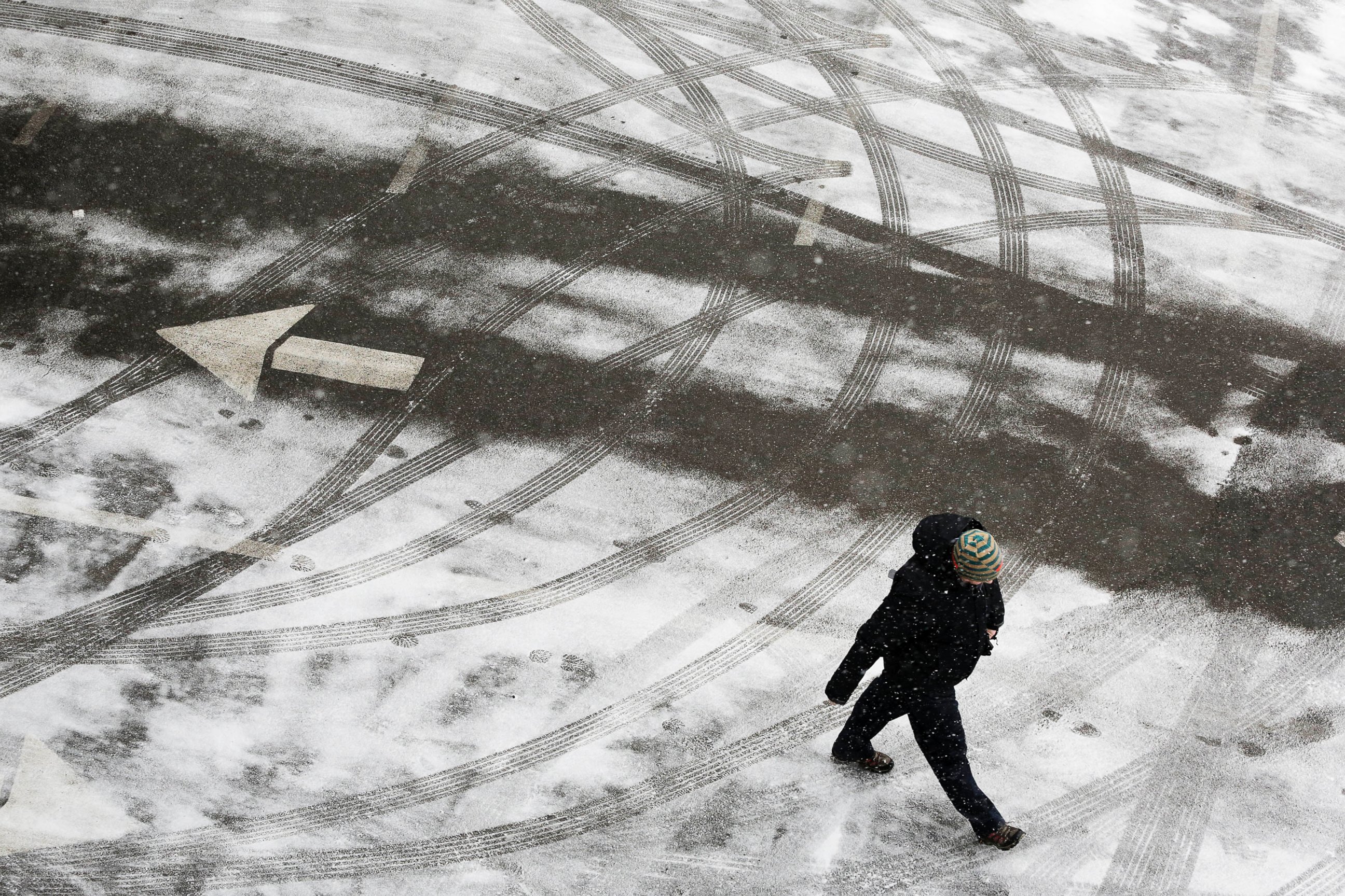 The snowstorm, which began as a clipper system that brought snow and slick roads to the Midwest on Sunday, was expected to hit the East Coast hardest Monday evening through Tuesday.