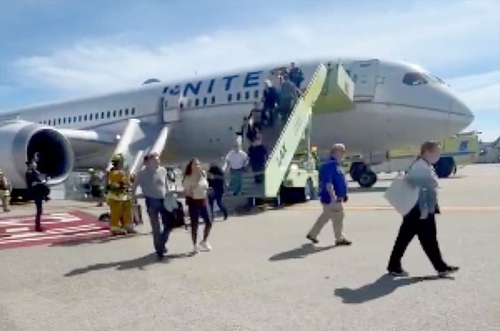 Hundreds of passengers aboard a United Airlines flight bound for New Jersey are safe after the plane made an emergency landing back at Los Angeles International Airport due to an apparent engine fire on Monday.