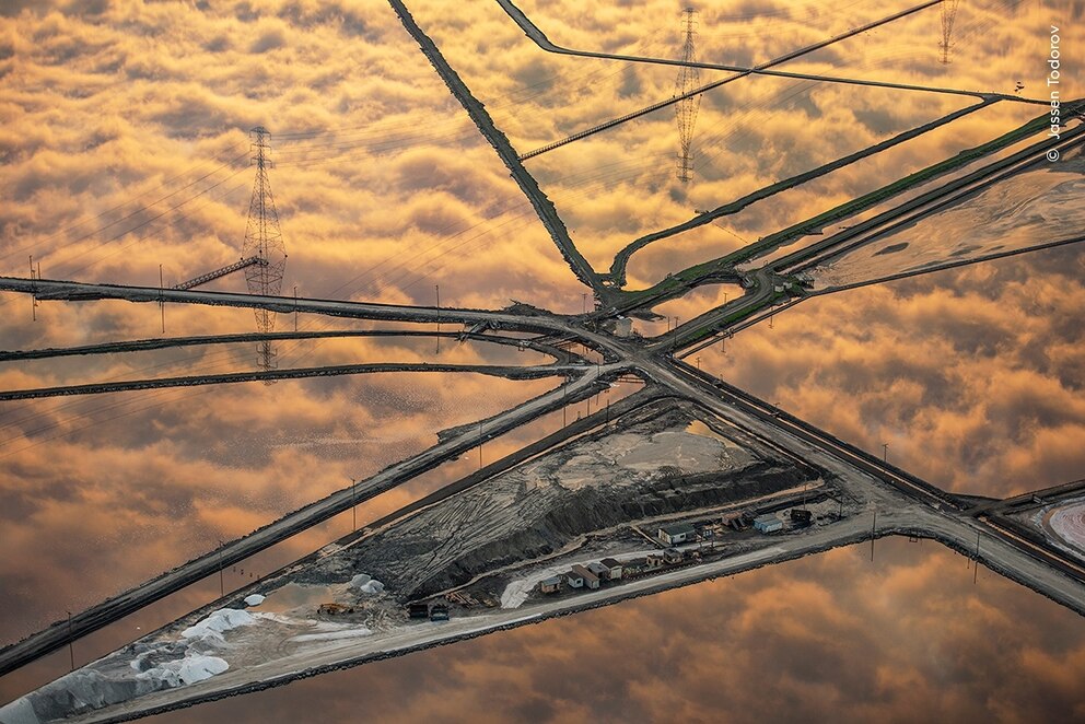 Pilot Jassen Todorov found unexpected beauty while landing at San Francisco International Airport. His aerial shot of sunset-lit salt ponds tells environmental success story, where 6,000 hectares of industrial salt flats are being transformed back into thriving wetlands. The restoration project tears down old dikes, letting nature reclaim what industry once took.