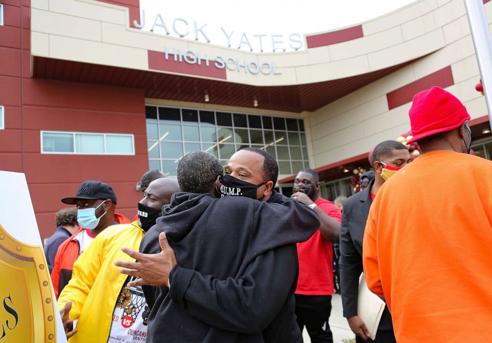 As the dedication ribbon was cut, those in attendance said Floyd's name in unison and released red and gold balloons. The ceremony also featured a motorcycle procession and a performance by the Texas Southern University drumline.