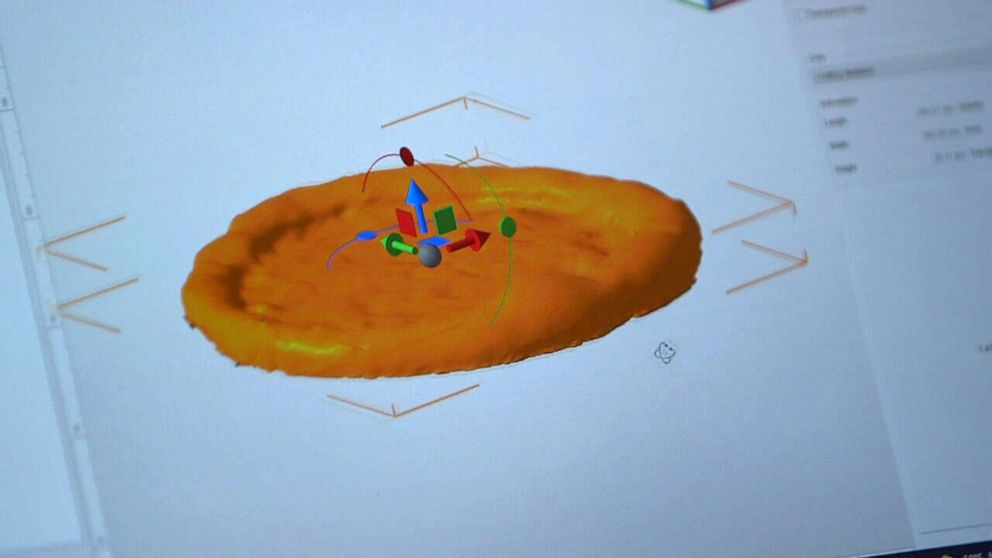 A 3D scanner analyzes freshly baked pies to measure volume accurately and discern how ingredients interact with each other on top of the sauce.