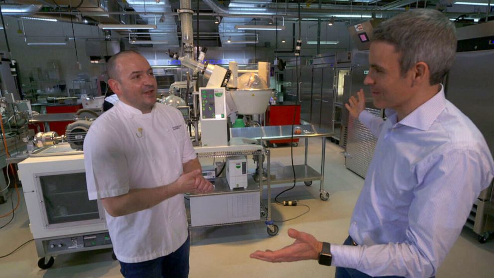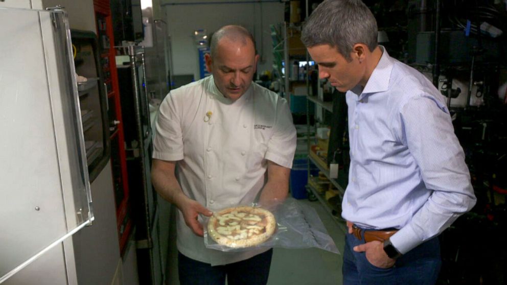 ABC News Live was given an inside look at the kitchen laboratory at Modernist Cuisine where a team of chefs and scientists were studying pizza techniques, from the making of dough to developing sauce and pioneering new methods.