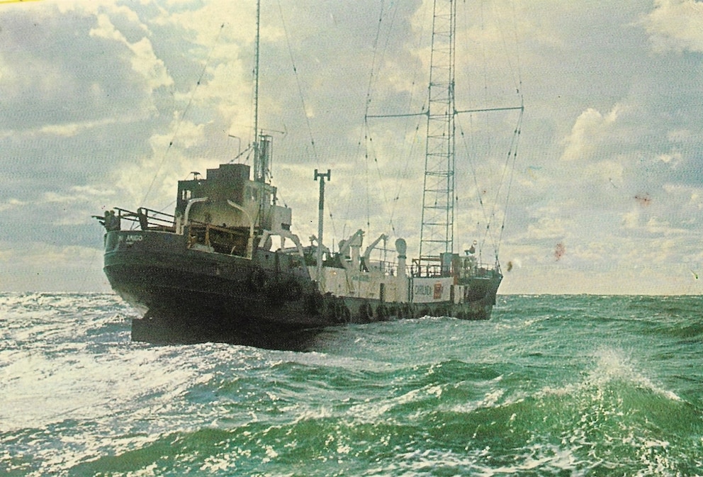 A year later, financial problems would hit, and Radio Caroline was raided and towed to The Netherlands by Dutch creditors where it was docked for the next four years.