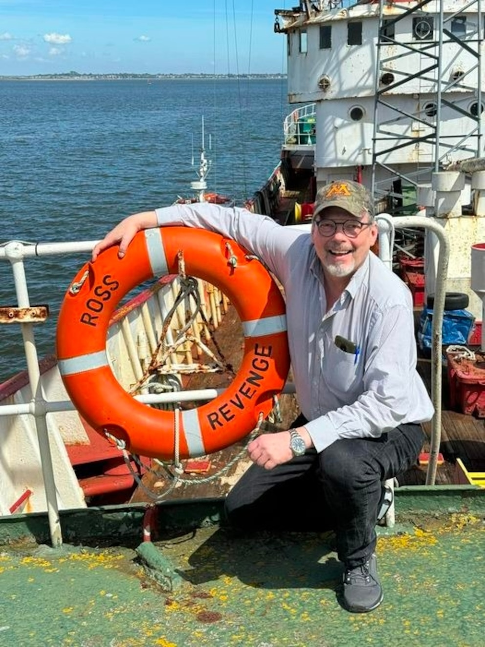 Setting up each month's special broadcast from the ship is the job of Dave Foster.