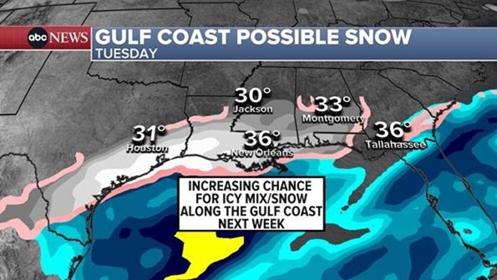 Rare Gulf Coast winter storm may bring snow, ice to region next week