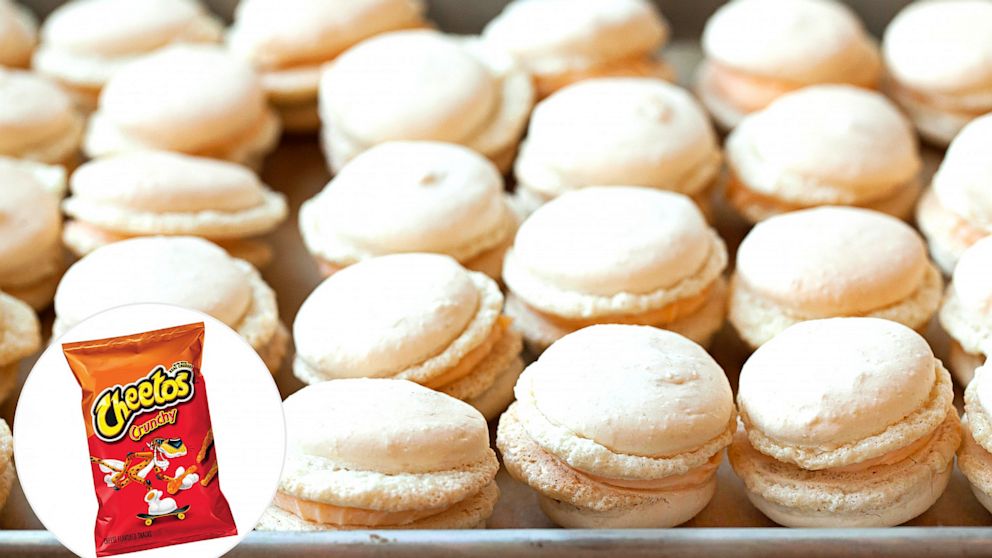 quicklist:1title: Cheetos Macaronsurl: text: Cheesy orange poofs meet macarons for a snacky spin on the classic French dessert. Who knew white chocolate and cheetos worked together?