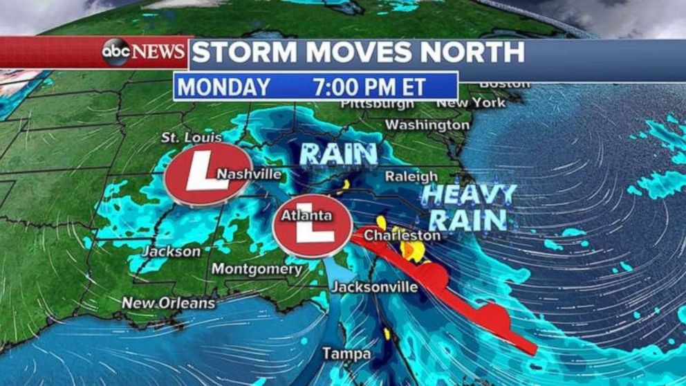 Spring storm moves up East Coast, threatens Carolinas with severe weather