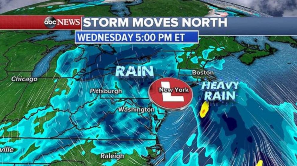 By Wednesday, the coastal storm should spread rain into New York City, Boston and the rest of the Northeast. Some of the rain could be heavy, but major flooding is unlikely.