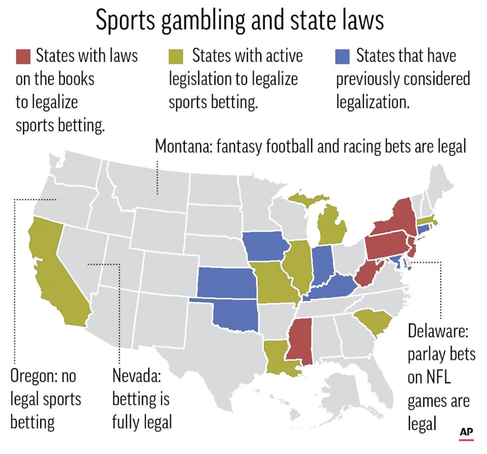 The NFL said in a statement following the decision, "Congress has long recognized the potential harms posed by sports betting to the integrity of sporting contests and the public confidence in these events. Given that history, we intend to call on Congress again, this time to enact a core regulatory framework for legalized sports betting."