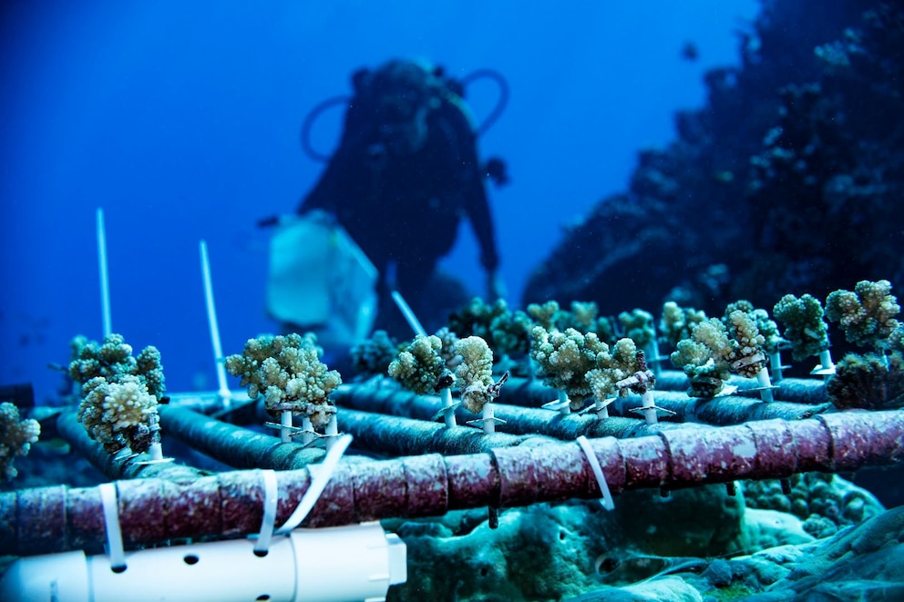 Hédouin and her team have planted cuttings of the heat-resistant coral from the lagoon in another area of the archipelago to see if they can adapt and thrive in a more typical environment where the sea temperature is lower.