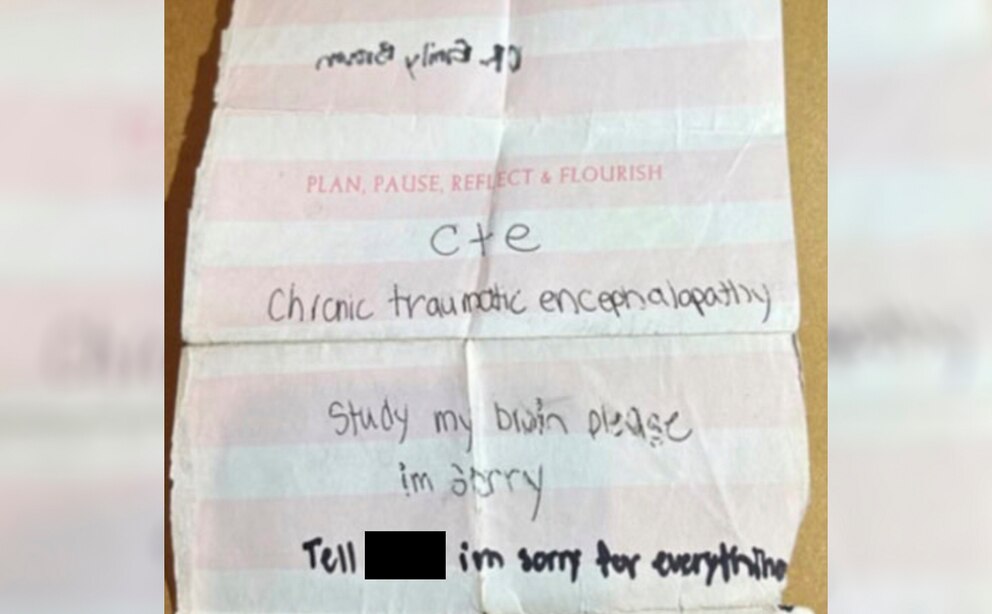 In his note, the suspect blames playing football for his CTE disease and asks that his brain be studied, police sources told ABC News.