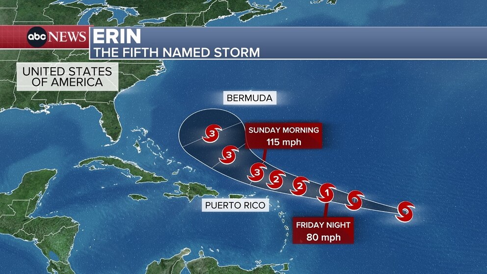 Because Erin is still many days away, meteorologists in Bermuda and the U.S. East Coast will be watching the storm closely, as any deviation east or west could lead to significant impacts.