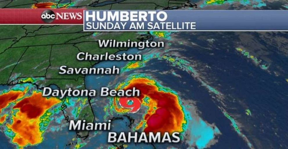 Tropical Storm Humberto currently has winds of 60 mph this morning and is about 175 miles east of Cape Canaveral, Florida, moving NNW at 7 mph.