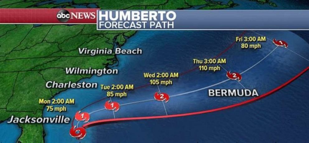 Humberto likely will become a Category 2 Hurricane by midweek and should do so in the open Atlantic Ocean. Humberto does seem to be traveling in the direction of Bermuda but it is unclear at this point what, if any, impact the storm will have on Bermuda later this week.