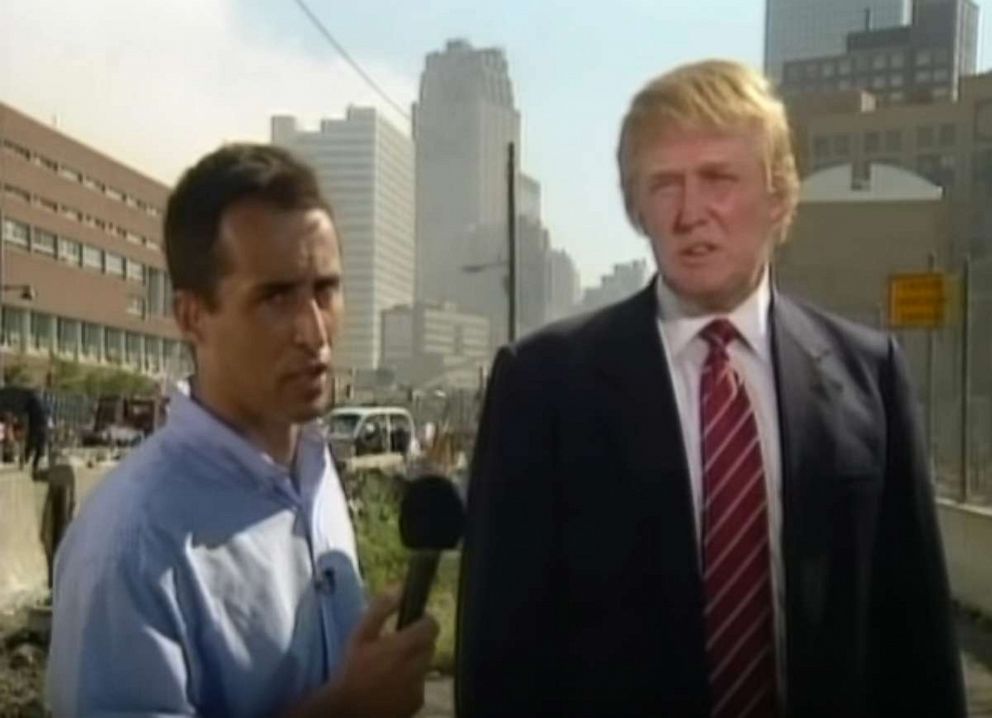 There is footage of Trump doing a video interview with a German news station near ground zero two days after the attacks.