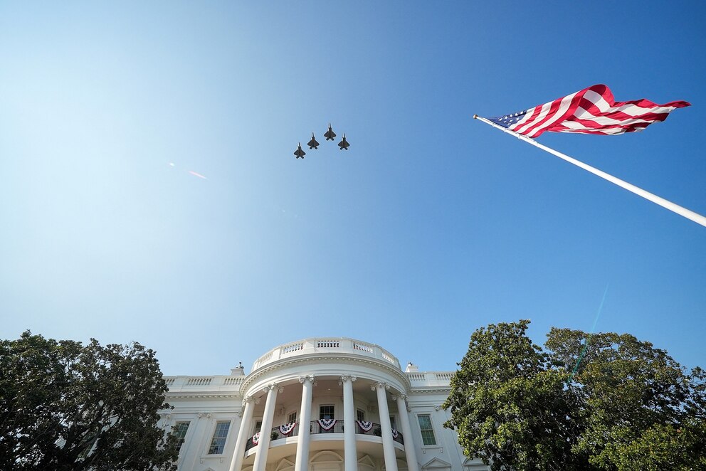 The White House celebrations for the Fourth of July included several flyovers, including one featuring B-2 bombers. The president said Thursday that the flyover will occur at the same time he signs the bill; however, it ultimately took place before the signing.