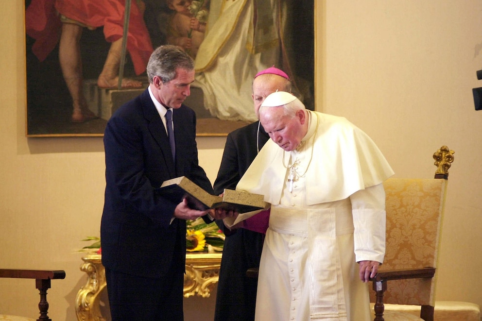 In July 2001, Pope John Paul, in his first meeting with President George W. Bush, urged the president to "reject" human embryonic stem-cell research.