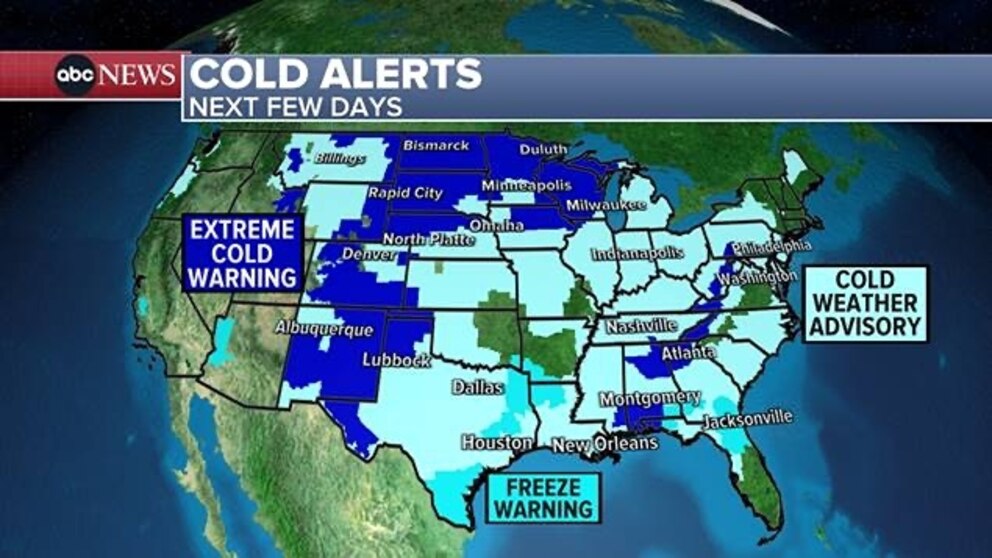 The coldest air of the season is moving into the Northeast and a huge part of the U.S., including the Gulf Coast, after a snowstorm.