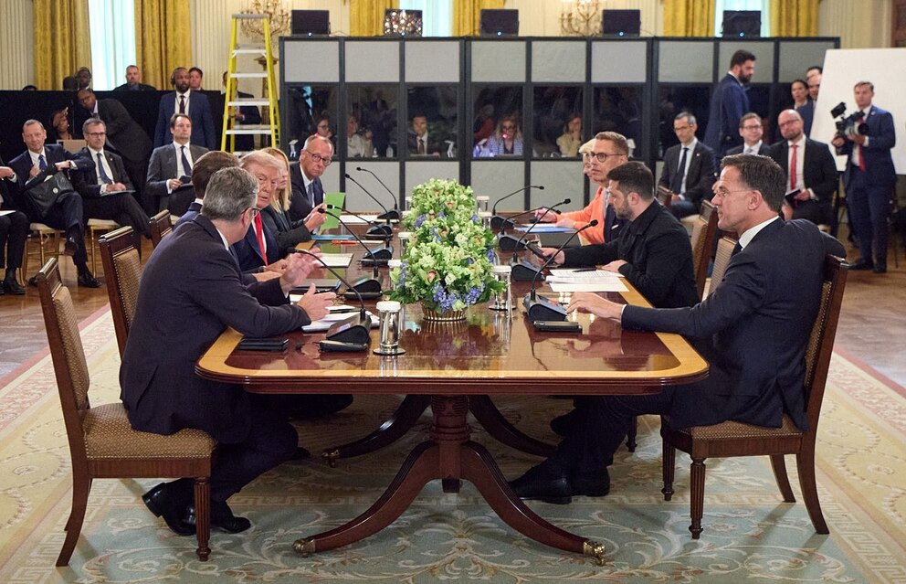 European leaders at the White House on Monday pressed for protections similar to Article 5 mutual defense obligations under NATO. Ukraine has pushed to become a member of the alliance, which Russia and Trump have rejected.