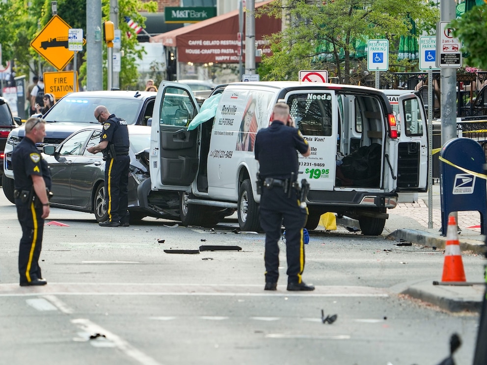 His truck then allegedly hit several parked cars which had five people inside, police said, and those collisions caused a chain reaction where a parked car was pushed into another pedestrian.