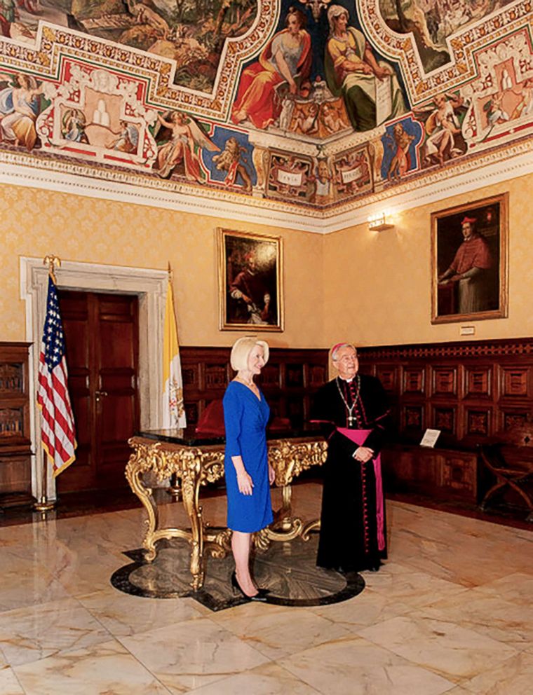 U.S. Ambassador to the Holy See, Callista L Gingrich, delivered the letter Vatican’s Archivist and Librarian, Archbishop Jean-Louis Bruguès and the Library’s Prefect, Bishop Cesare Pasini.