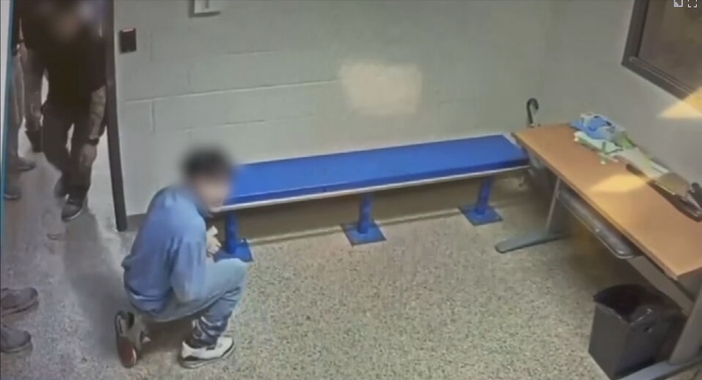 In footage from inside the building, the detainees could be seen running while handcuffed and their legs shackled, some falling to the ground amid the rush to get away from the gunfire.