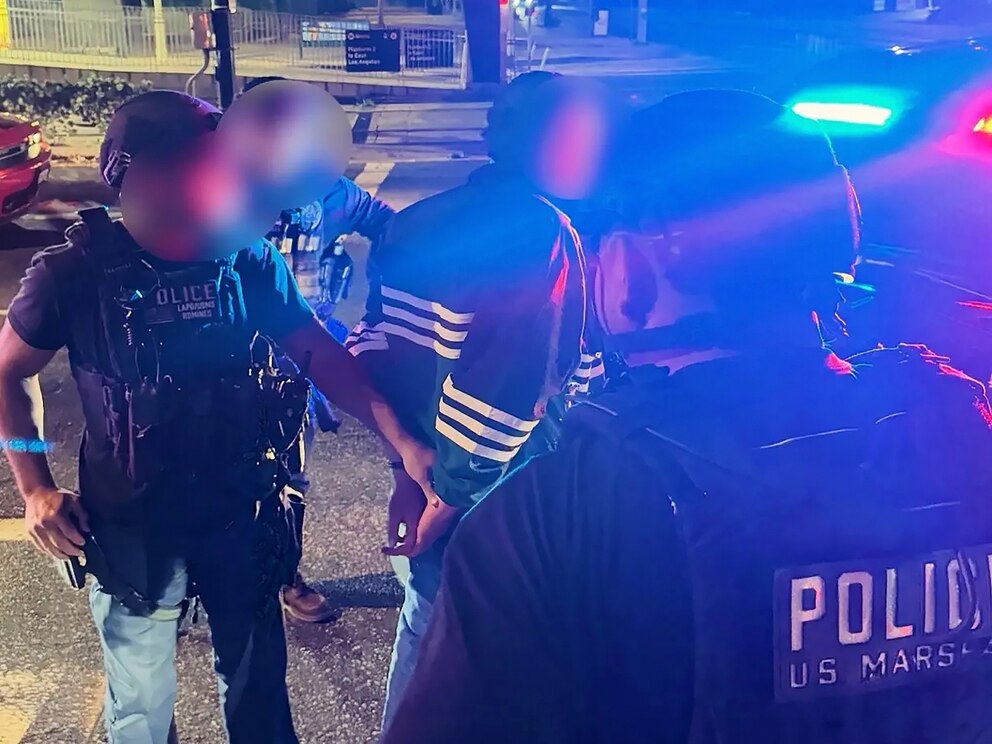 Another video shows him outside walking near a crosswalk when several police vehicles with flashing lights surround him. He can be seen in the video raising his hands.