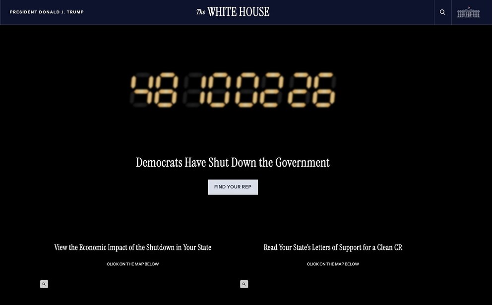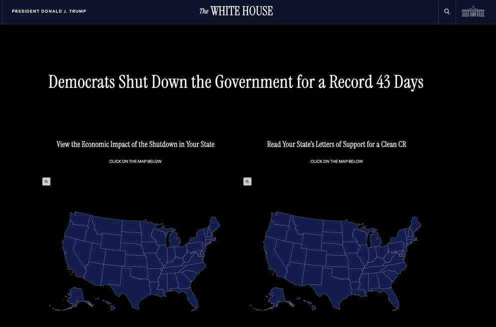 The shutdown clock was removed shortly after ABC News asked the White House why the clock was still running. The clock was replaced with a page headlined, "Democrats Shut Down the Government for a Record 43 Days."