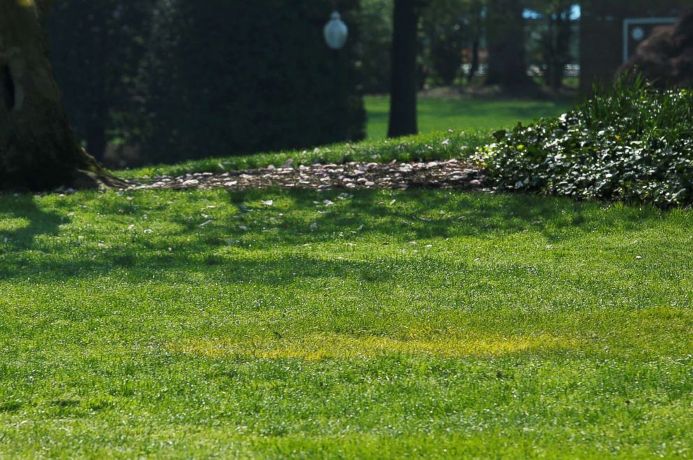 But now, less than a week later, recent photos show an off-color, pale patch of turf where the sapling once stood.