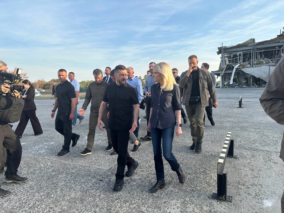 Zelenskyy and Raddatz toured and sat down at the site of an American-owned manufacturing plant in western Ukraine that was the recent target of a Russian missile attack.