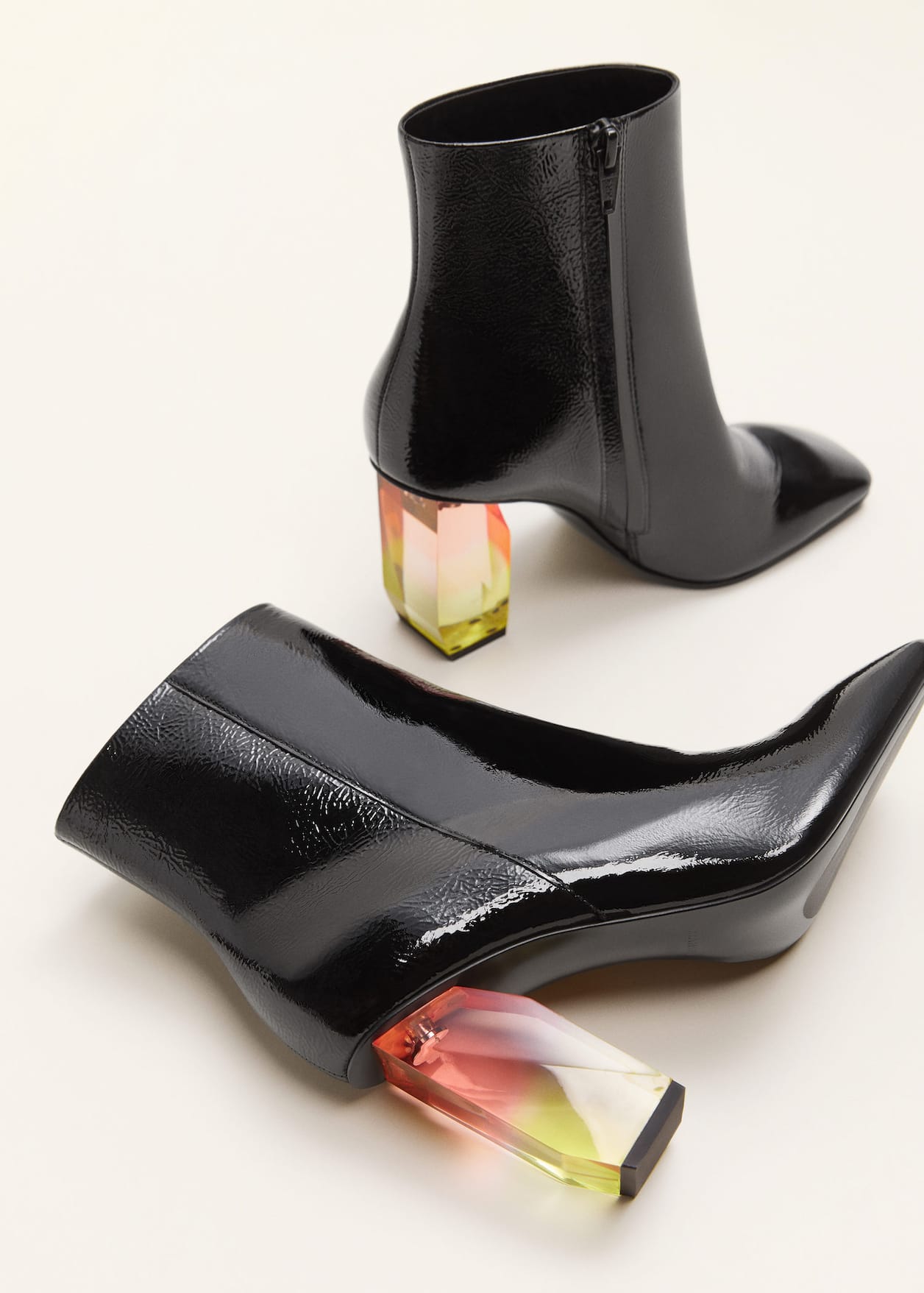 Mango, Geometric Heel Leather Ankle Boots