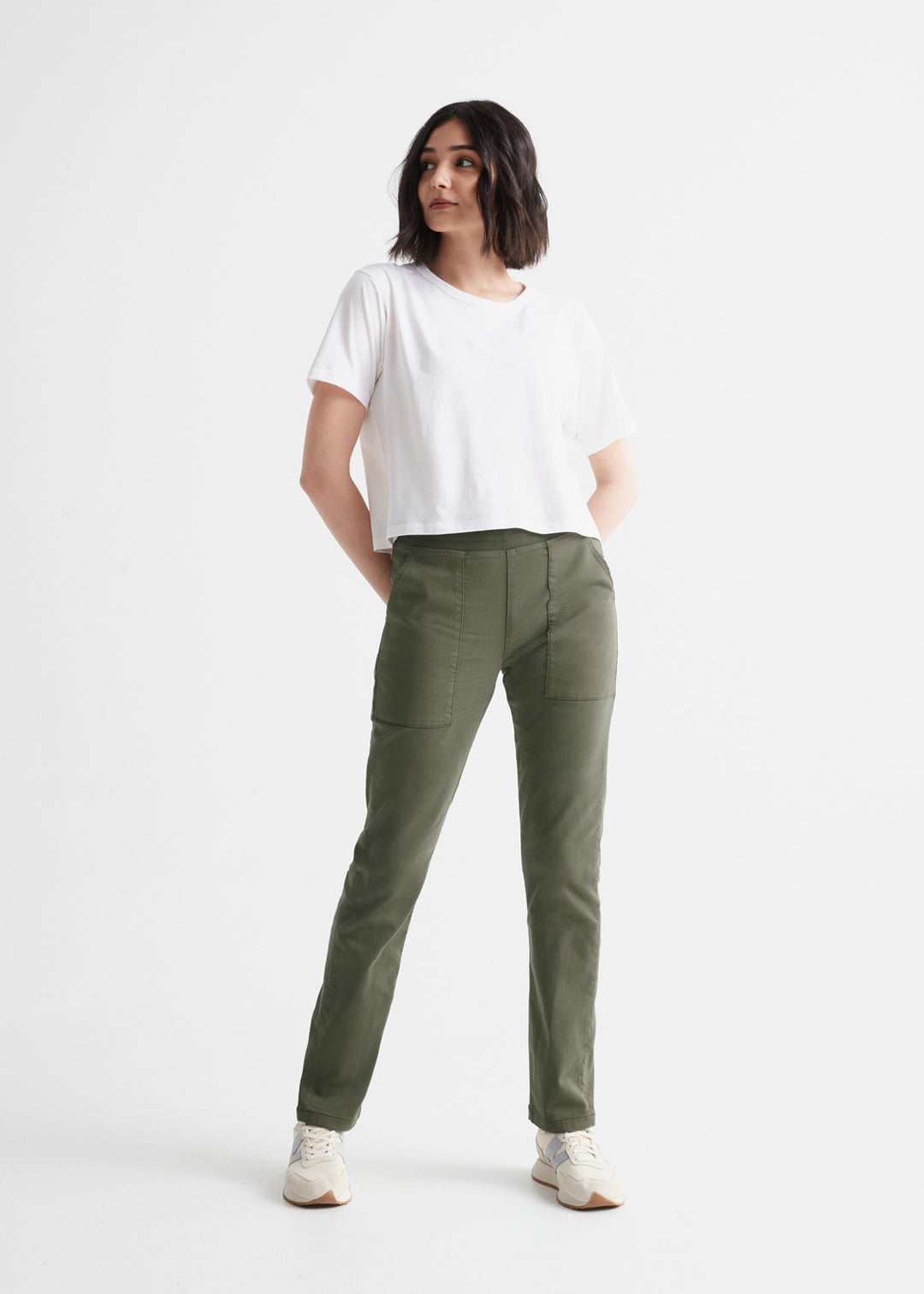 Having comfortable, easy-to-wear pants is also essential for solo travels. Arikoglu's recommendation for bottoms is Shop Duer's No Sweat Everyday Pant.